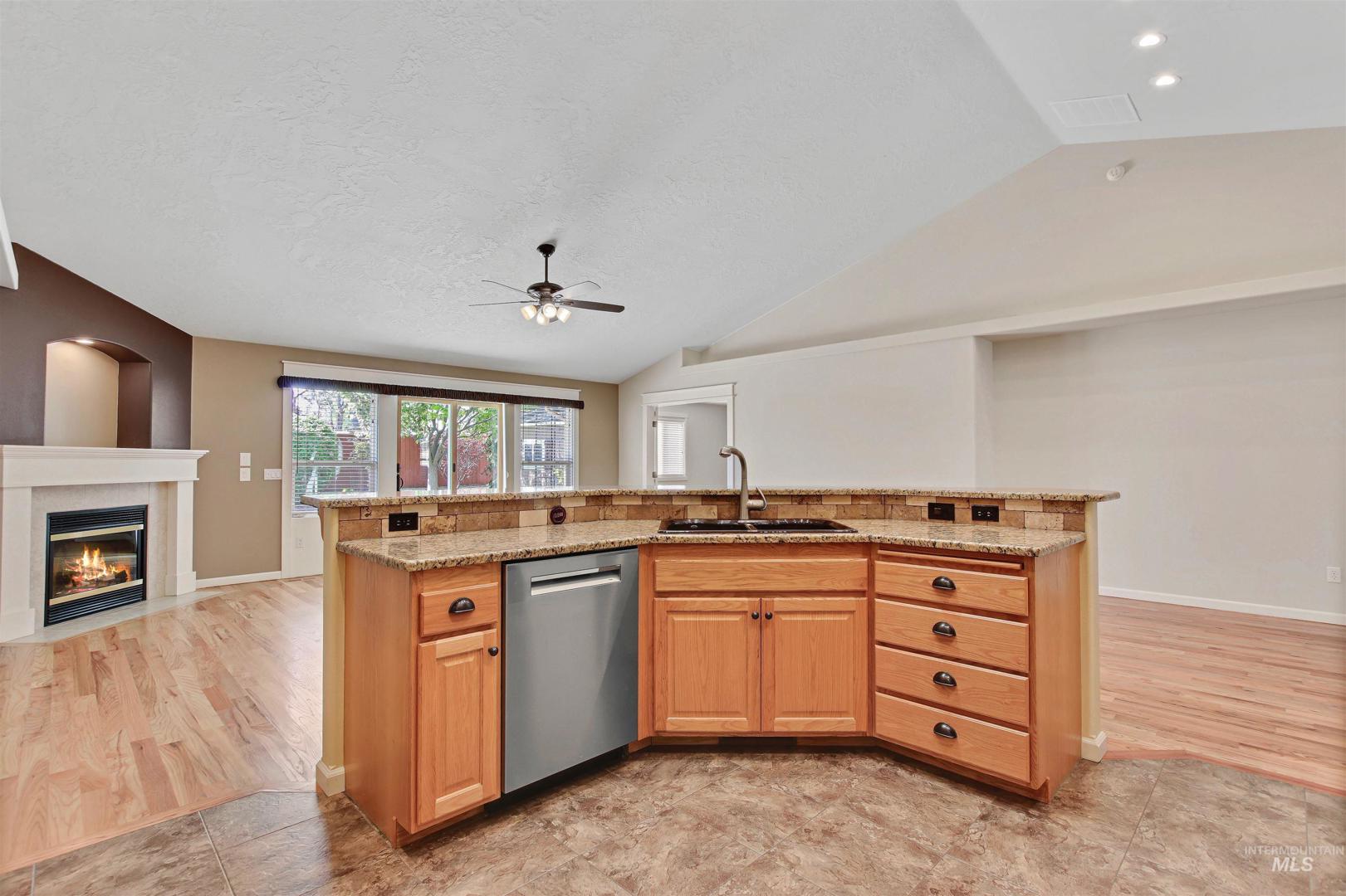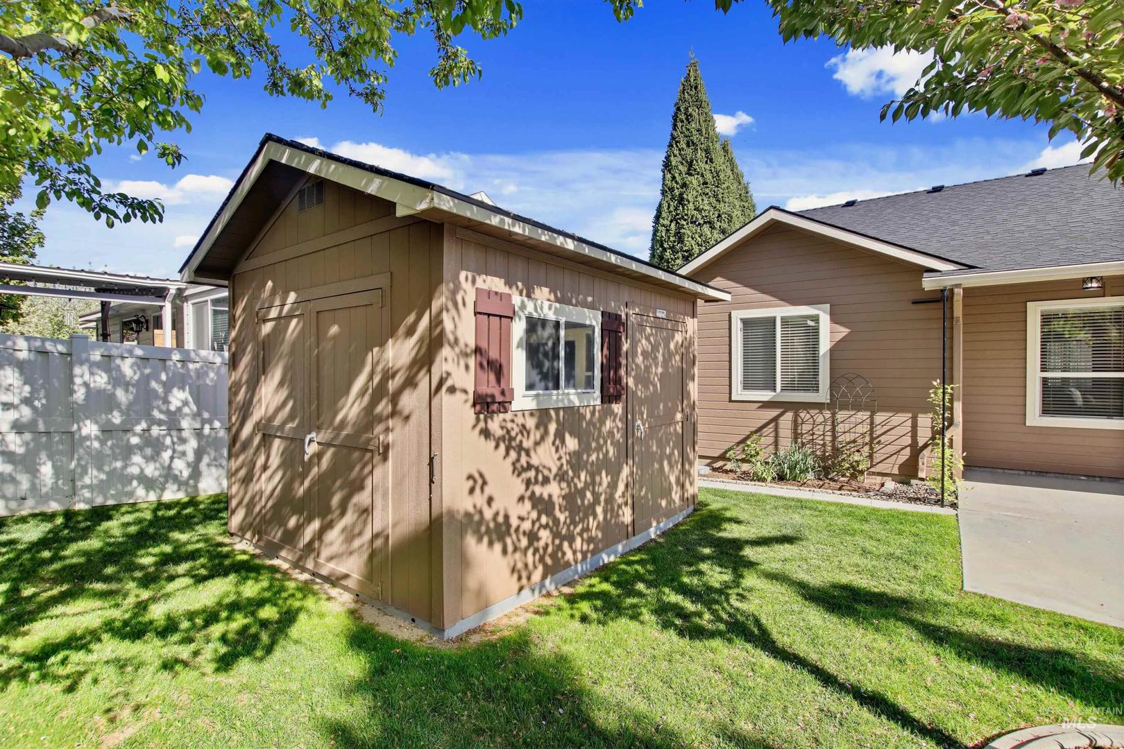 Immaculate and exceptionally well-maintained—this is truly a “move in ready” home. Pride of ownership shows throughout & will meet the pickiest buyer`s expectations. Thoughtfully designed split-bedroom floor plan offers privacy and functionality, with a spacious open-concept great room and kitchen perfect for everyday living and entertaining. The kitchen features tile floors, granite counters, and an upgraded gas range w/double oven. You`ll love the formal dining area which provides added flexibility. The vaulted ceilings create a light; airy feel & the 4th bedroom is just off the family room to easily function as an office or guest room. Step outside to a covered patio and enjoy the beautifully landscaped, park-like backyard—peaceful and perfectly maintained. This yard has been carefully manicured and updated with trees, flowers, & custom landscaping curbing. The shed has been fully painted inside and out and includes electrical for lighting and outlets. Upgrades include: new roof on home & shed in 2021, new dishwasher & oven in 2024, solid wood sliding glass door, new carpet throughout, front porch railings, upgraded thermostat, and extensive built-in garage storage. HVAC, water heater replaced in 2016 and serviced annually. The furnace is 90% efficiency & A/C is solar compatible. W/D & fridge included. RUN don`t walk to see this house. It won`t last long.