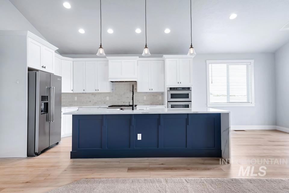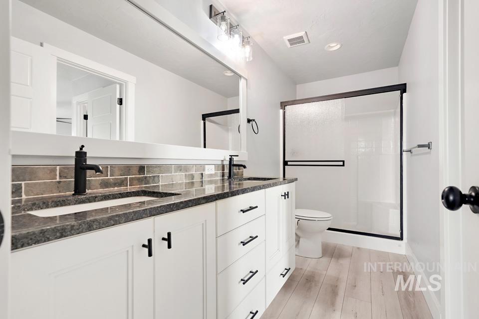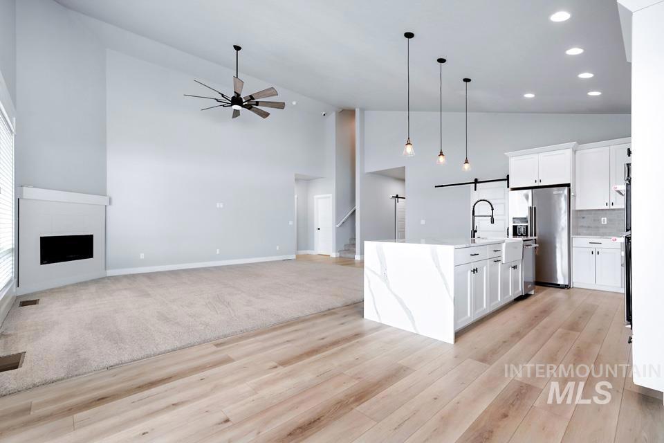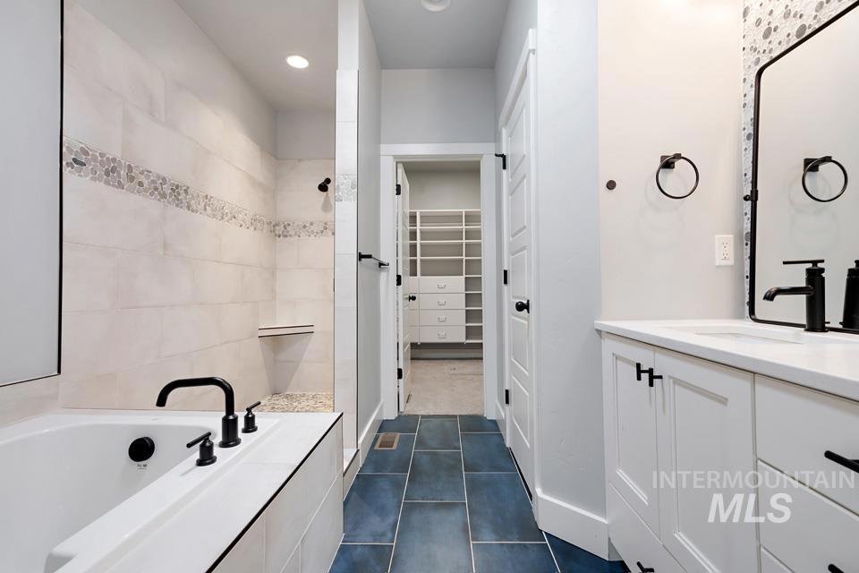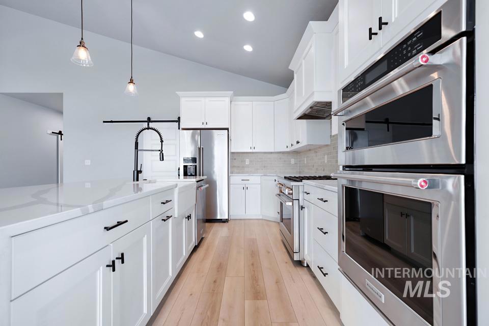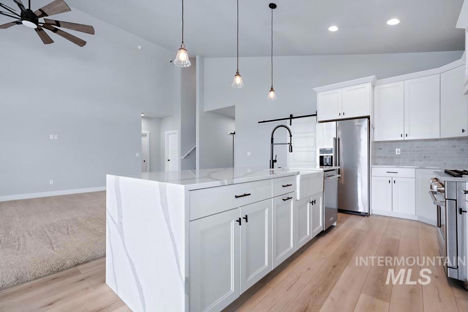 Space like this in town doesn`t exist — this 2021 custom-built 5-bed, 4.5-bath home on a .42-acre lot is exceptional. The garage, rec room & shop package seals the deal: a 28x29 2 car garage with half bath, walking through to a 16x50 heated & cooled rec room w/ island bar & beverage fridge, plus a 32x40 detached shop w/ wood shelving & 45` RV parking between the gate & shop. Every bedroom features a step-in or walk-in closet & nearly every one its own ensuite bath. The open great room w/ vaulted ceilings & modern gas fireplace flows into a chef`s kitchen built to impress: 9` island, double KitchenAid ovens, gas range, white-painted soft-close cabinets with 48" uppers, quartz countertops, full-tile backsplash & an 11`x5.5` walk-in pantry w/ barn doors & coffee station. The large dining room seats 10 & opens through a 6`x8` slider to the east-facing 12x26 covered patio w/ two ceiling fans & no rear neighbors. The 15x16 primary suite features a shiplap vaulted ceiling & 10.5x8 walk-in closet. The primary bathroom has tile flooring, dual sinks, quartz vanity, walk-in tile shower w/ dual showerheads, 6` soaker tub, water closet & sun tunnel. The 410 sq ft bonus room w/ its own door creates a fully self-contained private suite. Fully fenced & landscaped w/ a hot tub, auto sprinklers, pressure irrigation & a gate to 75` of common area. HOA $250/yr. Call for your private showing today.