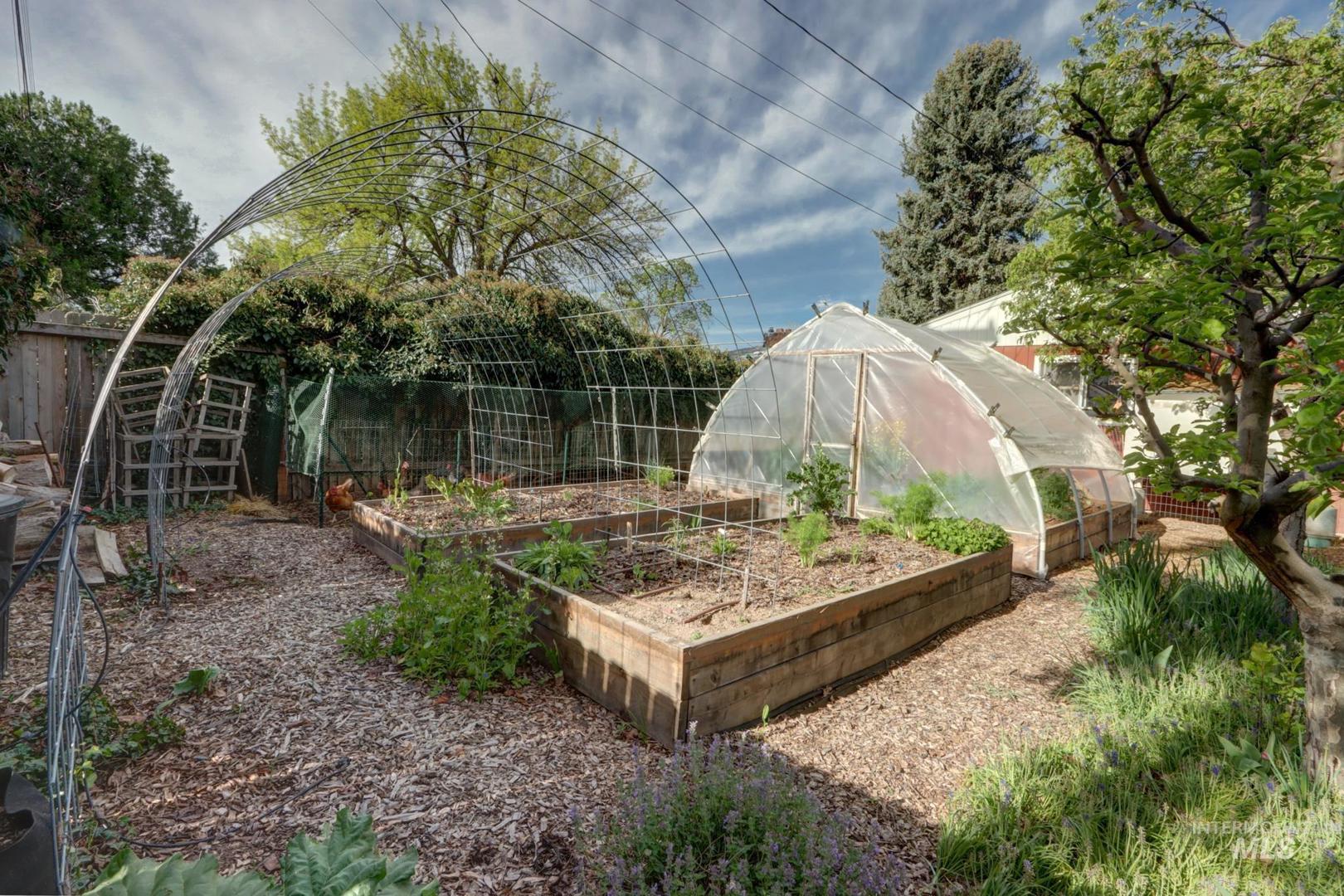 OPEN HOUSE SATURDAY 4/25 1:00 – 3:00. What a terrific opportunity to live on Boise’s coveted Depot Bench Neighborhood. Just minutes from Downtown, the Greenbelt, Boise River and BSU. This adorable brick home has so many lifestyle options. Main floor has gorgeous original hardwood floors, wood burning fireplace, built in`s, arched shelves, adorable eat in kitchen, 2 bedrooms, plus a flex room with backyard access. The newer 1 bedroom basement apartment is a self-contained unit, with the option of a connecting or separate entrance, egress windows, LVP flooring, wood burning fireplace, full complement kitchen with a W/D combo unit. This home can live as a single family home, short or long term rental of both living spaces or a combination to offset mortgage costs. Situated on a private, quiet, large lot, with an east facing backyard, custom pergola for Bbq gatherings, drip system gardens, large walk in greenhouse with starters, chicken coop and run area (ready for the girls), plus an oversized garage to fit all your Idaho toys!