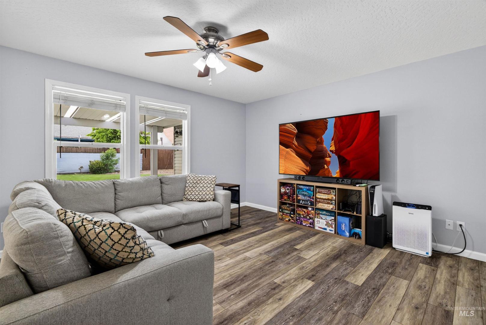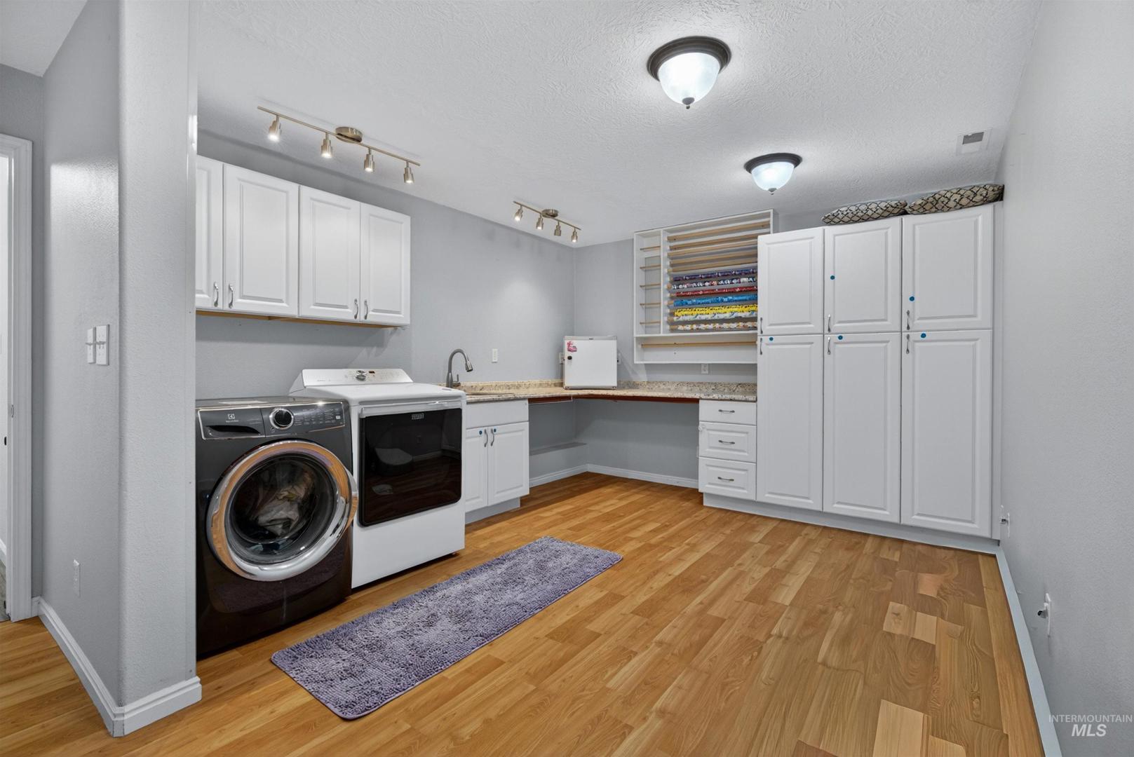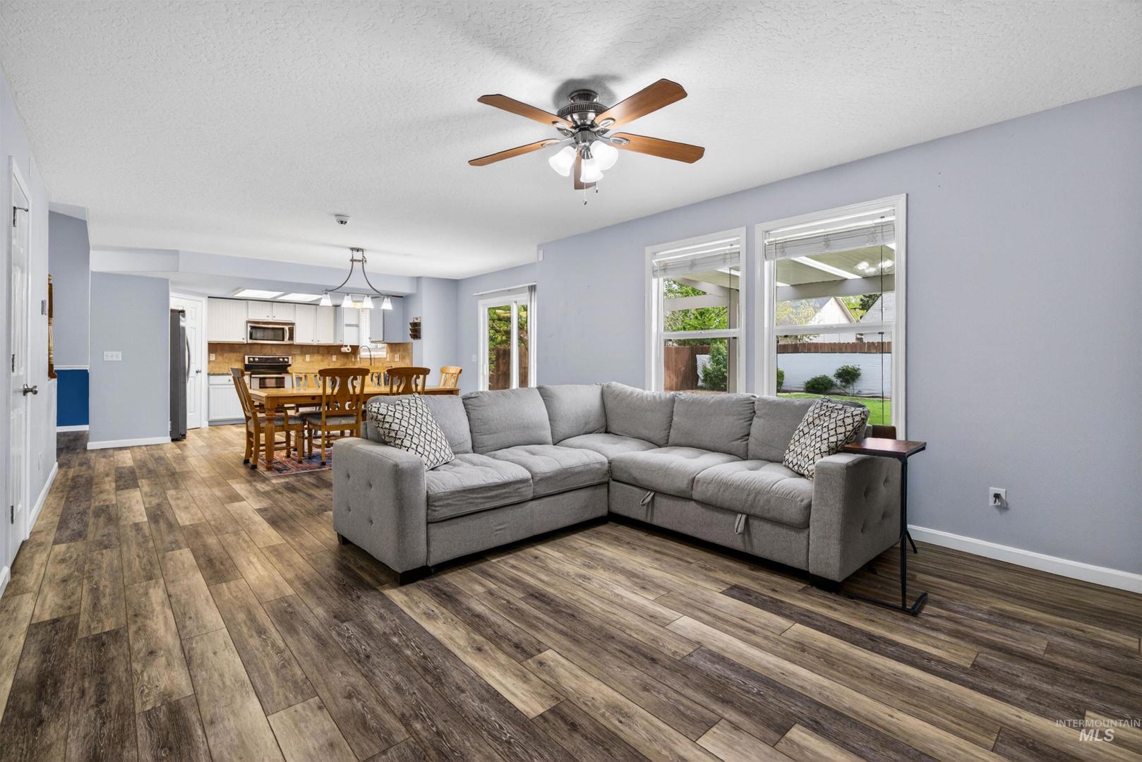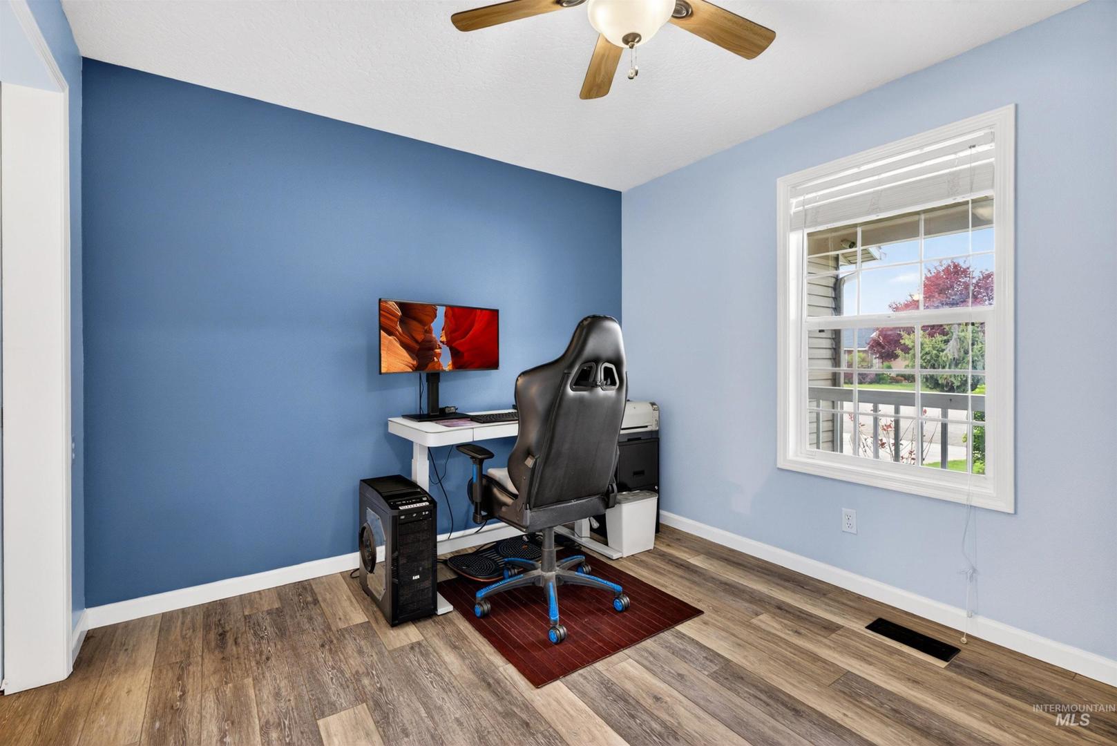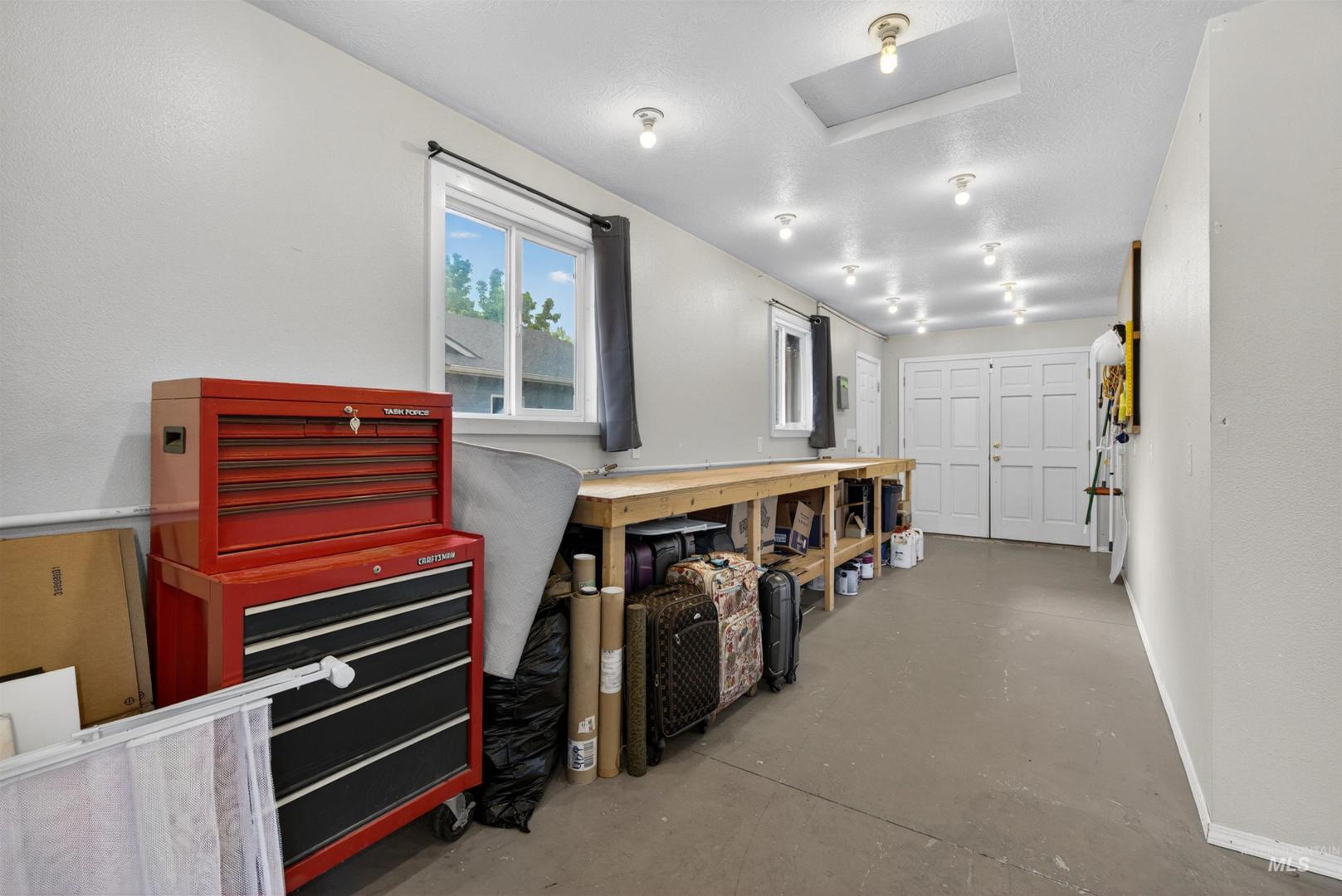 Spacious South Boise home set among mature landscaping and highlighted by a charming covered front porch—perfect for enjoying Idaho’s changing seasons. The property offers a 3-car garage, extended driveway, and RV or boat parking with a concrete pad behind dual gates. A standout feature is the 14x20 pellet heated shop located just behind the garage—ideal for hobbies, a workout space, or additional storage. Major systems updated include the HVAC and water heater in 2025. Inside, the main level offers generous living spaces with durable LVP flooring, two separate living areas, a dining space, and a functional kitchen featuring granite countertops with tile backsplash, stainless steel appliances, and a corner pantry. An expansive laundry and craft room provides flexibility and storage, while a main-level office or optional fourth bedroom, along with a half bath, adds versatility. Upstairs, the primary suite includes a walk-in closet and step-in shower, complemented by two additional bedrooms and a full bath. The fully fenced backyard offers room to make it your own, featuring pressurized irrigation, raised garden beds, a storage shed, and a pergola-covered patio. Ideally located near community green spaces and just minutes from freeway access, the airport, and downtown Boise, this home combines space, function, and convenience.