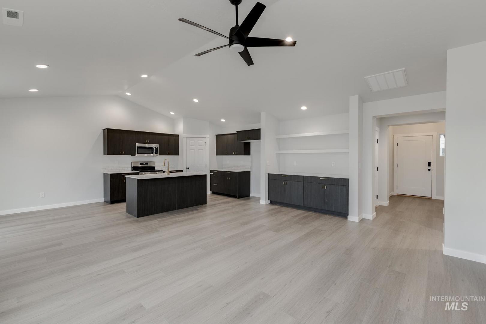 Get $15K YOUR WAY! Ask a Sales Specialist for details. This brand new home located in vibrant Kuna, Idaho welcomes you with open arms. The Palisades 1722 welcomes you with soaring 9-foot ceilings that create an immediate sense of openness the moment you enter. Three of the four bedrooms are thoughtfully tucked together near a full bathroom, offering comfort and convenience for daily living. Moving through the entry, the home opens into a vaulted kitchen, living room, and dining area where natural light pours through large windows and enhances the warm, inviting atmosphere. The kitchen comes with stainless steel appliances and stylish solid surface countertops, adding both functionality and aesthetics to the kitchen. The primary suite is privately positioned at the rear of the home and provides a serene retreat with generous space to unwind. With its harmonious layout and refined finishes, the Palisades 1722 blends comfort, style, and easy living throughout. **PHOTOS ARE SIMILAR**. All selections are subject to change without notice, please call to verify.